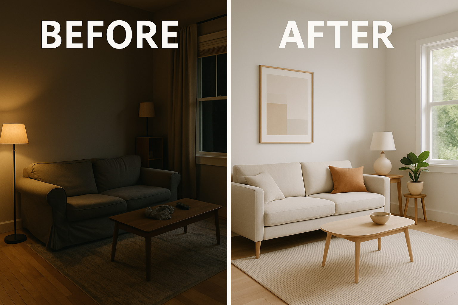 리빙룸 인테리어 전후 비교는 단순한 ‘꾸미기’가 아니라, 삶의 질을 높이는 변화입니다. 가구와 조명, 소품의 작은 조화가 모여 전혀 다른 분위기를 만들어냅니다. 이번 기회에 집 안의 리빙룸을 다시 한 번 점검하고, 작은 변화로 큰 만족을 느껴보시길 바랍니다.