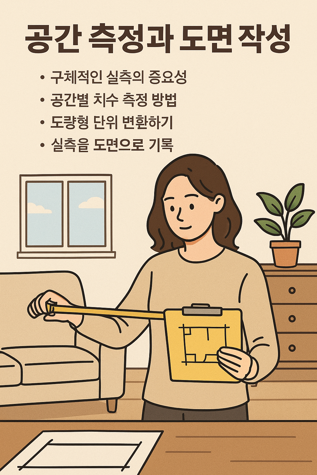 - 방 크기와 동선을 고려한 레이아웃 작성