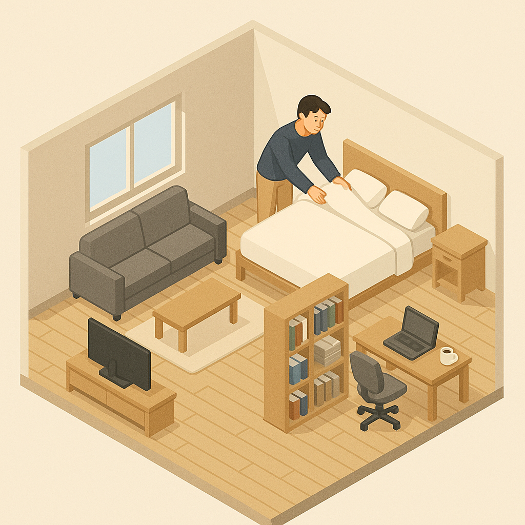특히 원룸 같은 작은 공간에서는 수납 기능이 있는 가구를 선택하면 깔끔한 생활이 가능합니다.