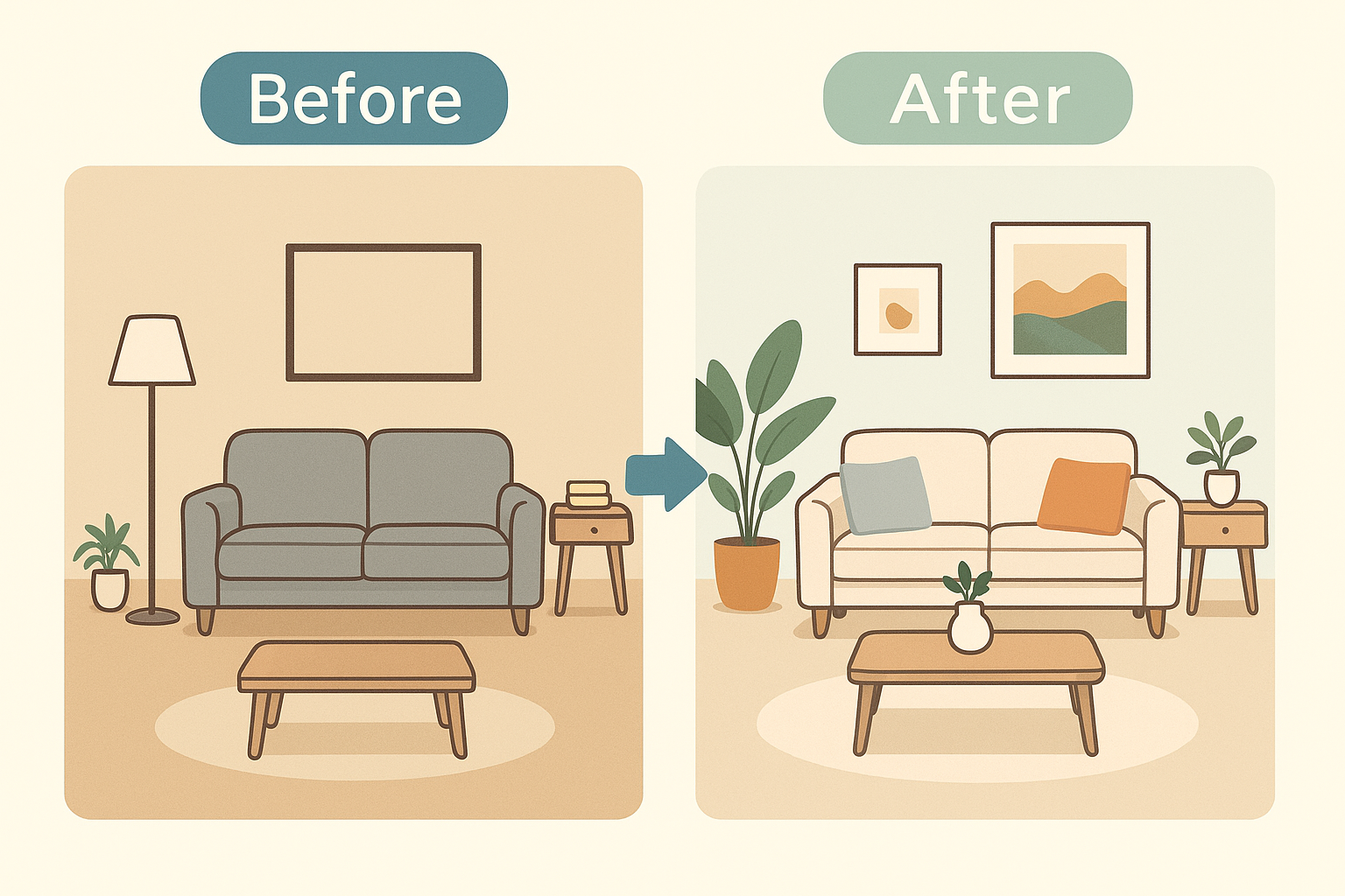 너무 많은 가구와 소품은 공간을 답답하게 만듭니다. 중요한 것은 **비움의 미학**이에요. 가구 배치를 바꾸기 전, ‘이게 꼭 필요한가?’를 먼저 생각해보세요. 적당한 여백이 있어야 공간이 숨을 쉽니다.