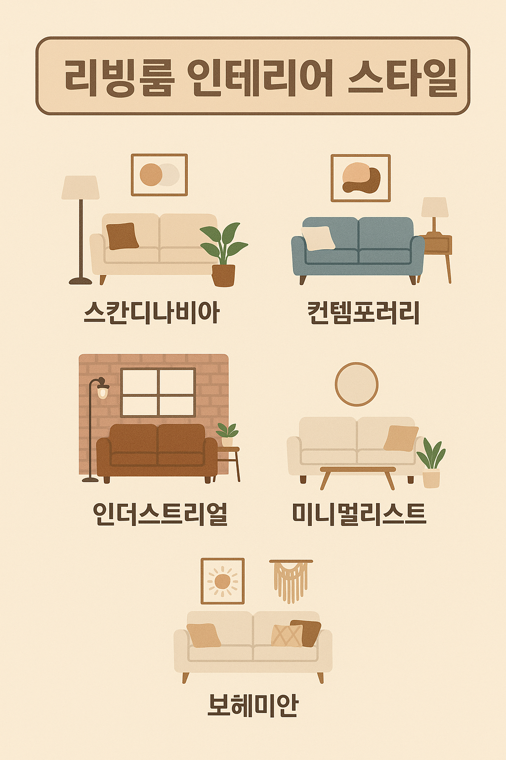리빙룸 인테리어는 단순히 예쁘게 꾸미는 것을 넘어, 삶의 질과 분위기를 좌우하는 중요한 요소입니다. 모던, 미니멀, 내추럴, 북유럽, 빈티지 등 각기 다른 스타일은 공간의 개성과 주인의 취향을 반영합니다. 당신의 생활 패턴과 원하는 분위기에 맞는 스타일을 선택해 리빙룸을 새롭게 변신시켜 보세요.
