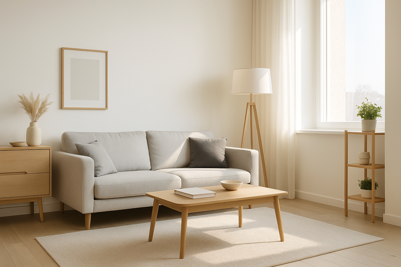 “Less is more(적을수록 더 풍부하다)”라는 철학이 담긴 미니멀 인테리어는 필요한 가구와 소품만 배치</strong해 공간을 넓고 쾌적하게 만듭니다. 밝은 색상의 벽과 직선적인 가구 배치를 통해 리빙룸이 실제보다 더 넓어 보이는 효과를 줍니다. 불필요한 장식품을 줄이고 실용성 중심으로 꾸미는 것이 핵심입니다.
